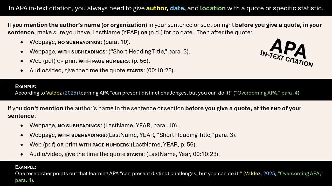 - APA Basic In-Text Citations Quick Reference Kelli's one-page quick reference — especially useful for the Argument Essay.